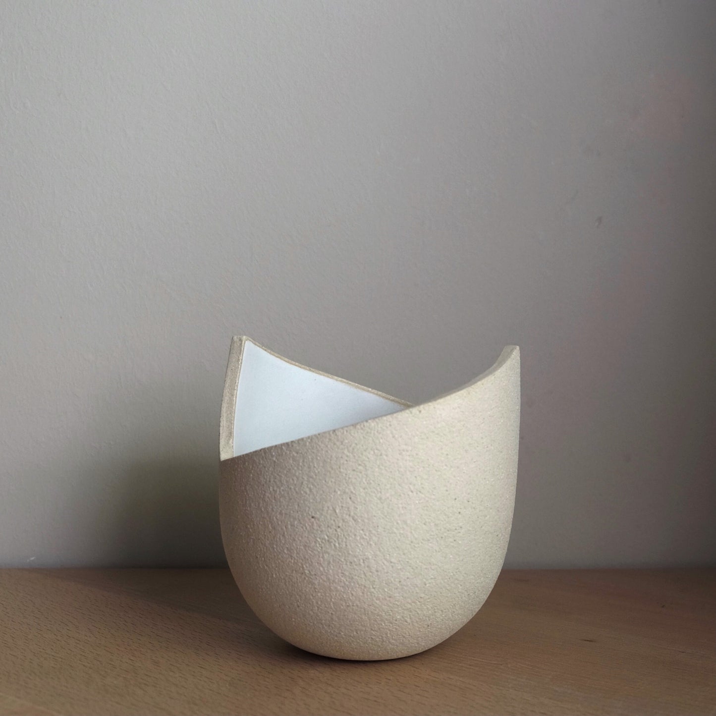 Matériaux : Grès en trois coloris (beige, gris et noir), émaillé blanc mat à l'intérieur sauf pour celui en grès noir qui est émaillé en transparent