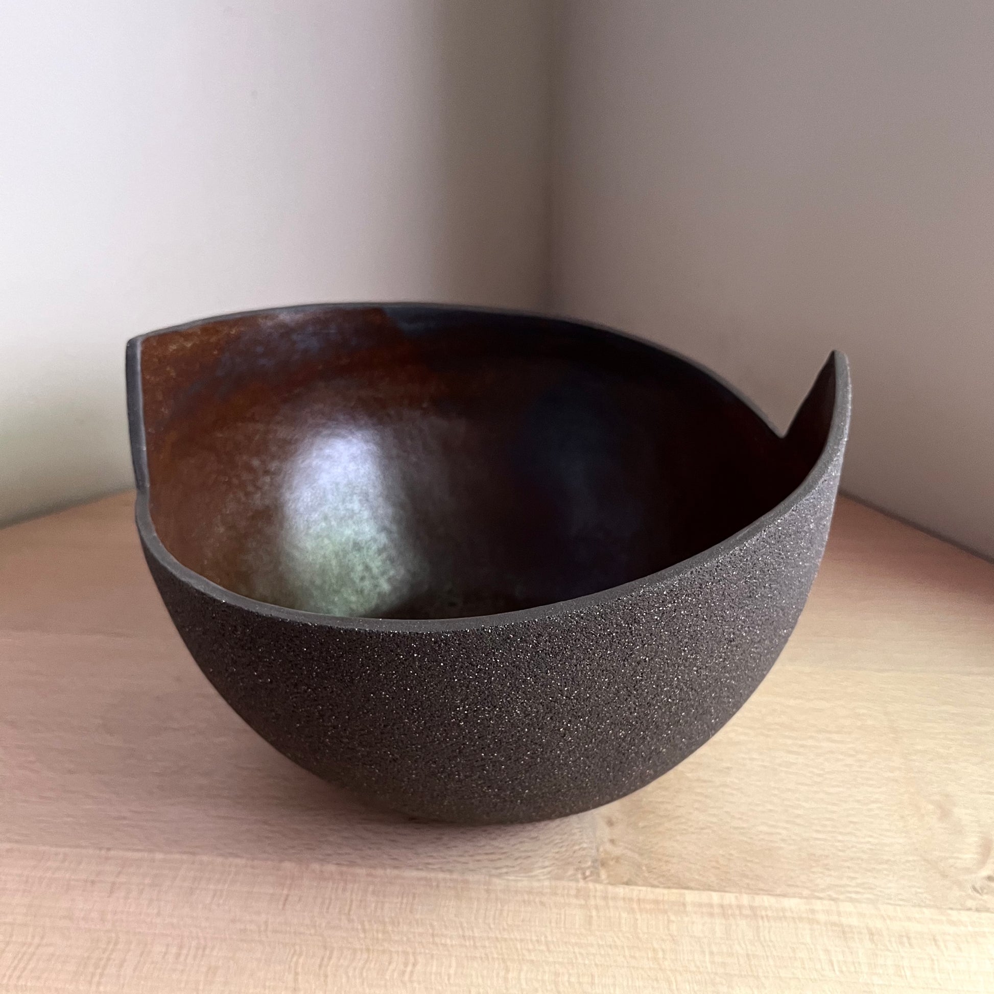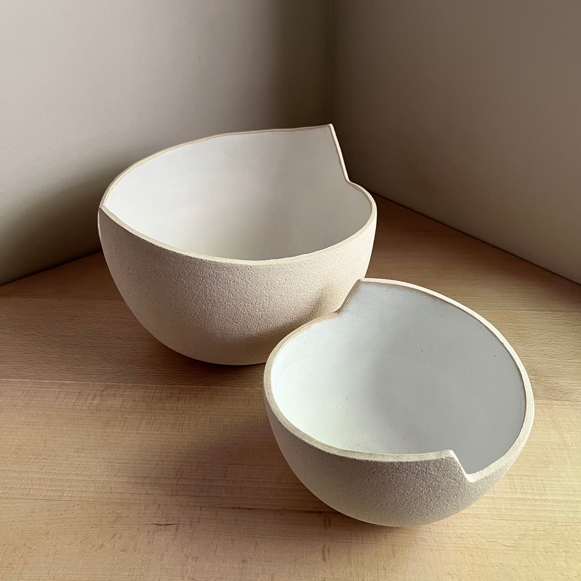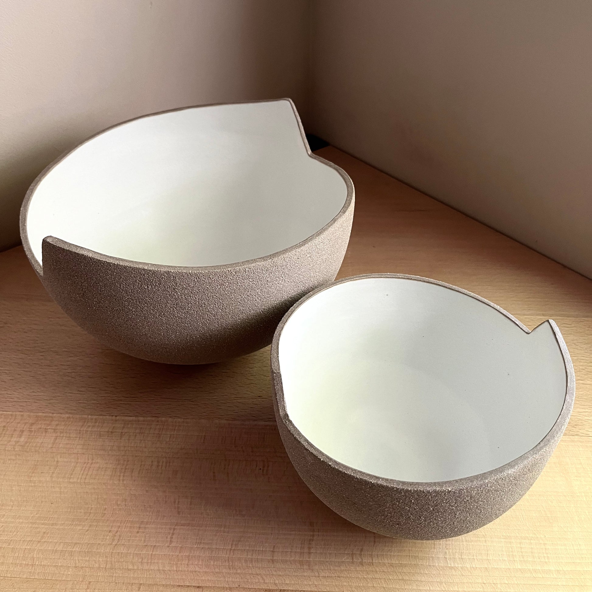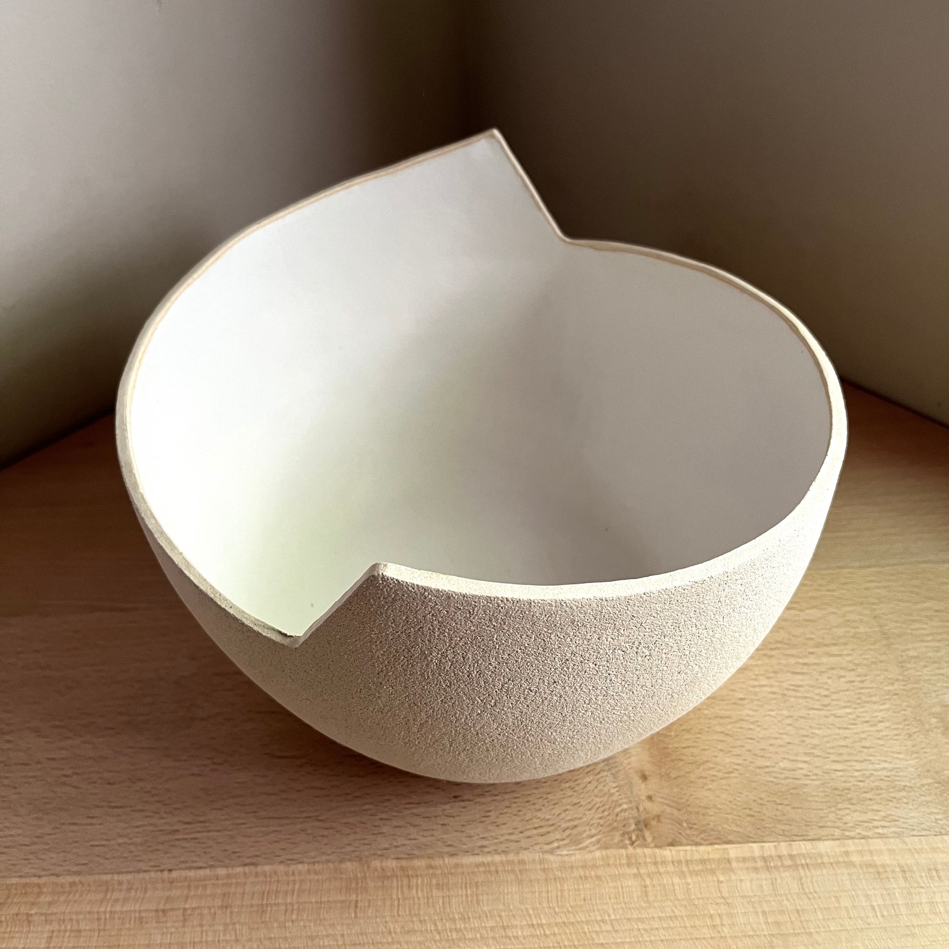 Après quelques jours de séchage (en fonction de l'humidité dans l'air), le saladier est poncé à la main afin de faire ressortir le grain de la terre avant de partir pour une cuisson "biscuit" à 1000°c pendant 9 heures.